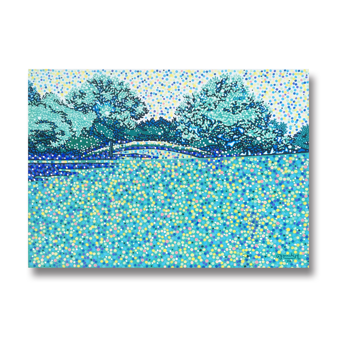 A3サイズの木製パネルにキャンバスを張って、アクリルガッシュで描きました。